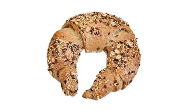 Weizenhörnchen mit Körnern. Bestreut mit Haferflocken, Leinsamen und Sesam.